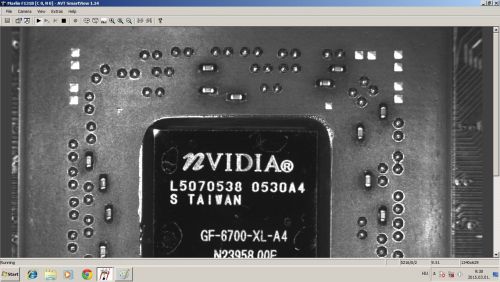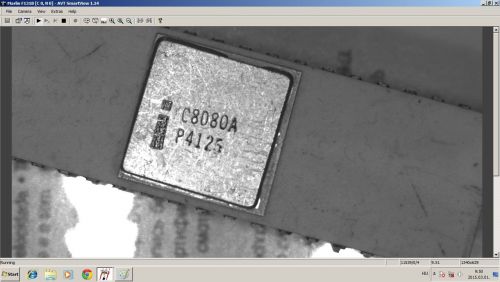 Sikerült egy automata IC programozó gépből életre kelteni a kamerát. Egy gyors firewire kártya beszerzés, és driverek telepítgetése után végre képet kaptam. 1280*960-as felbontás mellet monokróm ám tűéles képet kapok, a kamera fókusztávolsága is szerencsére elég messze van így kényelmesen lehet alatta pákával dolgozni, kamera köré még raktam egy LED szalagot hogy félhomályban is lehessen vele dolgozni. Végre tudom majd a kényesebb SMD-s feladatokat is intézni normálisan
