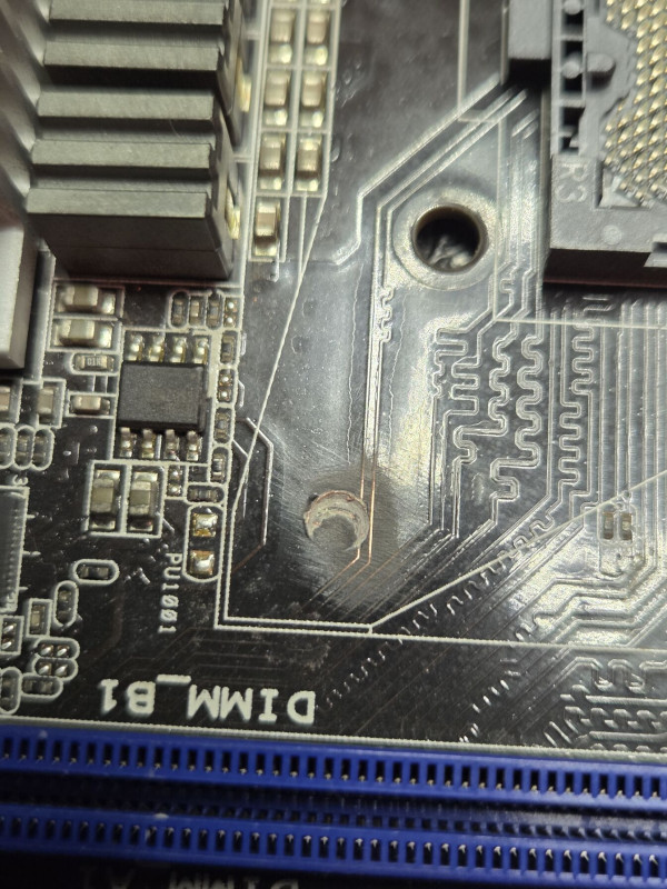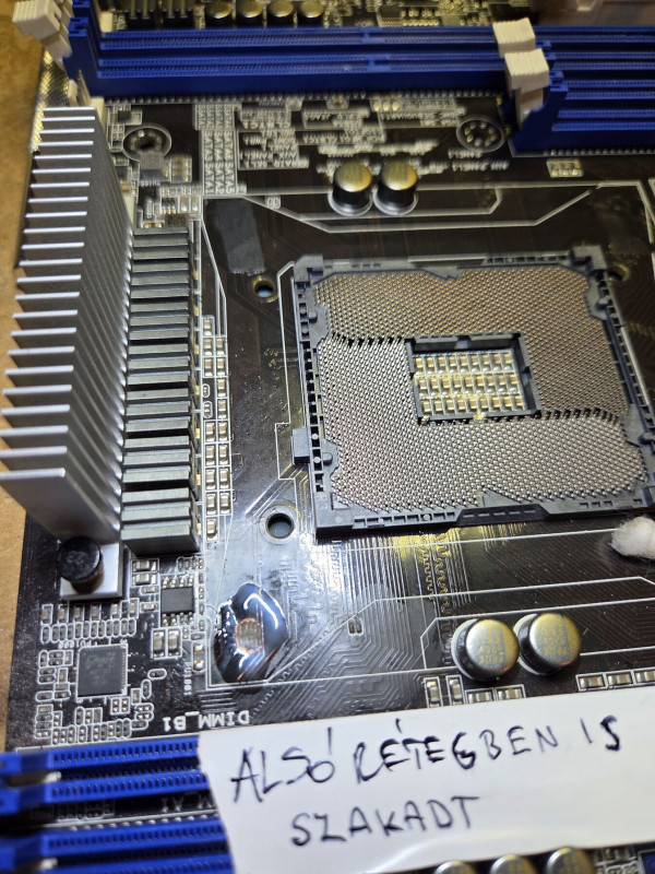Egy mélyebb karcolás szerelés közben szépen fel tudja szántani valamelyik felületi nyomvonalat, ami például a a memória slotok és a CPU között van. Ez általában könnyen is javítható egy kis ón áthidalással.