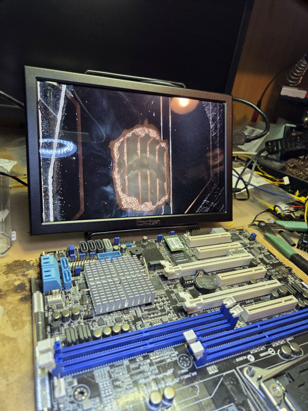Valaki agyatlanul próbálkozott egy DIY hűtés megoldással és túl hosszú csavarokkal próbálta lefogatni és mocskosul túlhúzta.