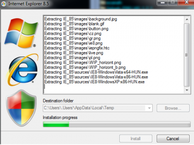 Most következik az a bizonyos ie6_hack class, majd a biztonságos internetcsomag (?) és a letöltendő, IE_85_nso.exe. (Hű, de fincsi...).