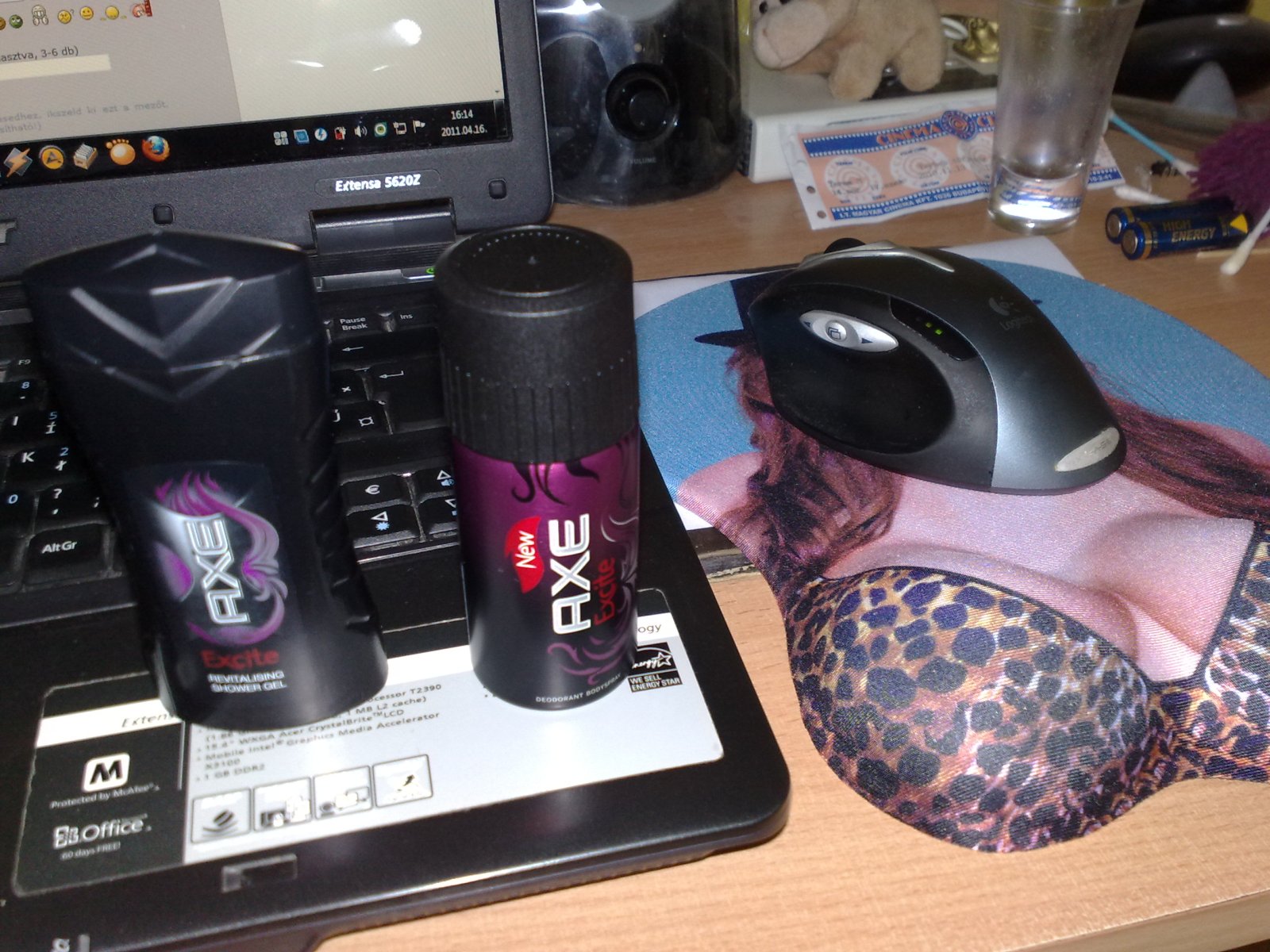 A Tecsóban promóció van, az Axe szervezi. Bármely két Axe termék vásárlása esetén kapsz egy egérpadot, egy új Excite tusfürdőt és deo-t (mini méretben). Ha megvásároltad a terméket, a blokkot el kell vinni a promóciós standhoz (pécsi Tecsóban ez a 35ös kassza felé van, majdnem a virágossal szemben), bemutatni, irkálnak valamit, nevet és aláírást kérnek, és megkapod a "jutalmad". Úgyis kellett egy új egérpad, ez pedig csuklótámaszos. Nagyon kényelmes