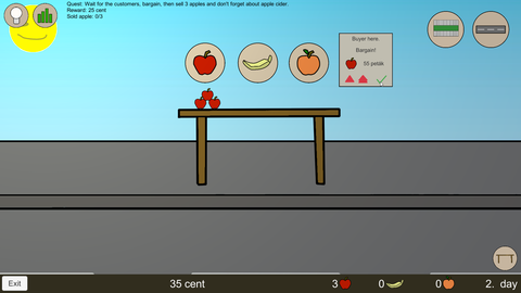 A lényege, hogy egy piaci kofát kell alakítani, aki gyümölcsöt termel a kertjében és ezeket igyekszik eladni.