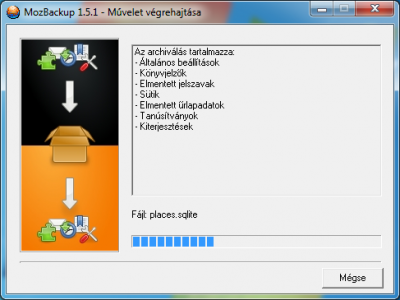 hungarian_lang.zip tartalmát kicsomagoljuk a MozBackup telepítési könyvtárába és felülírjuk a már meglévő (angol) Default.lng fájlt.