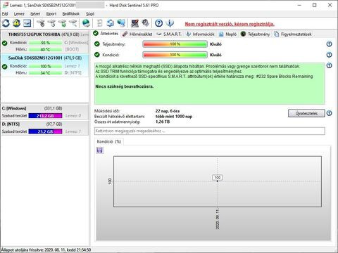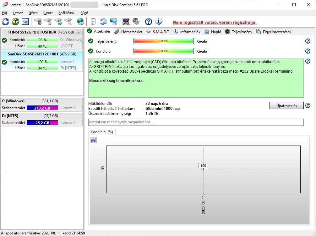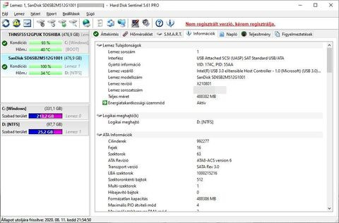 Ami a marketing anyagban olvasható azt mind tudja. A Windows és a Linux is képes kihasználni a vezérlőben rejlő potenciált. Nem volt gond a smart és hőmérséklet információk kiolvasásával. Illetve a Trim és UASP támogatással se volt egyik operációs rendszer alatt sem.