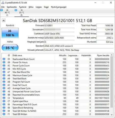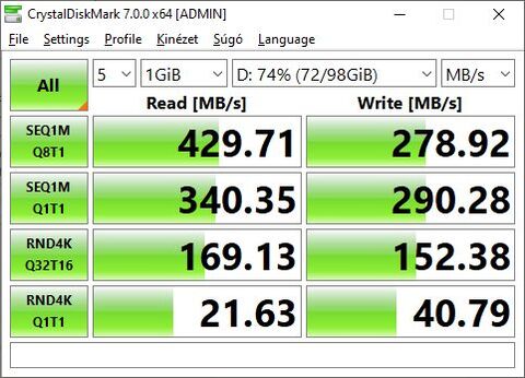 • Gyári írás / olvasás: 470 / 505 MB/s