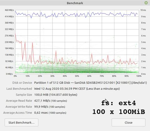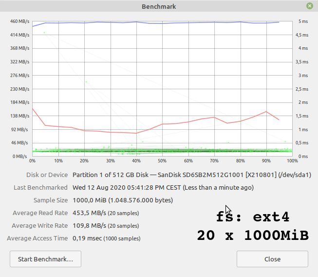 dd - ext4$ dd if=/dev/zero of=benchfile bs=4k count=200000 && sync; rm benchfile