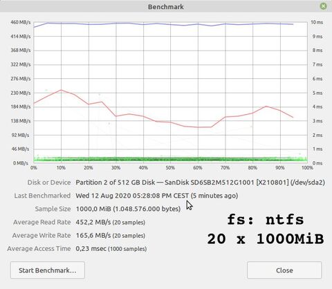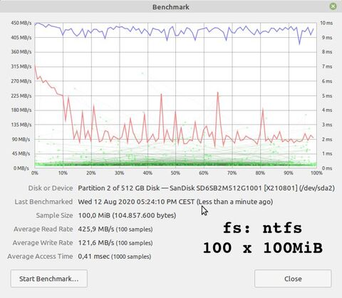 dd - ntfs$ dd if=/dev/zero of=benchfile bs=4k count=200000 && sync; rm benchfile