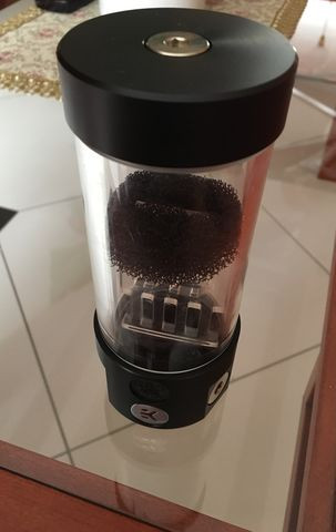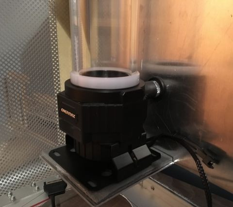 Kénytelen voltam megválni hőn szeretett tartály és pumpa párosomtól, mert sajnos hely szűkében voltam és (ki) kellett találnom valamit. Azért döntöttem eme szerkentyű mellett, mert ebben szintén D5 motor dolgozik, így kellőképpen erős, alacsony fordulaton halk, és maga a kombó ára is relatív olcsó. A kimenő ága izgalmassá teszi a loopot, ugyanis, ha szembe fordítjuk a pumpát, akkor hátrafelé tolja a vizet.