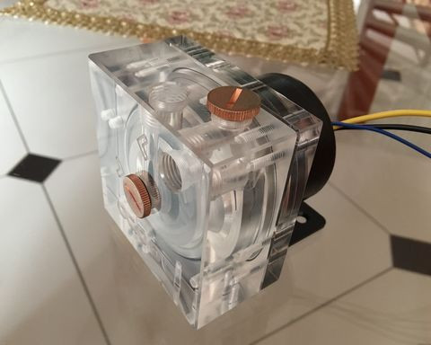 Nos, hol is kezdjem.. Elég sok minden változott az elmúlt bő fél évben. Az Enermax pumpa idő közben távozott, mert nem váltotta be a hozzá fűzött reményeket. Sajnos nekem túl hangos volt, és így menesztve lett. A végső döntésben sokat segített, hogy akkoriban pont üzleteltem egy helyi kollégával, aki szintén zenész és nála egy 270-es D5 Photon hajtotta a vizet. Megkérdeztem tőle, hogy miért nem csavarja fel egy kicsit a pumpát, mert oké, hogy nincs hangja minimum fordulaton, de nem is tol annyit. Erre közölte, hogy max-on jár a pumpa. Konkrétan semmit nem lehetett hallani. Úgyhogy újra elkezdtem nézni a D5 pumpa-res kombókat. Kezdetben csakPhotonokat, de nagyon drágállottam, nálam ez a 30-35k a lélektani határ, ami a Photon 50-70k-s árával nem igazán volt összeegyeztethető. Szóval keresgéltem tovább és ráakadtam az alphacool vpp755-ös pumpájára, amiből természetesen létezett kombó kivitel is. Ráadásul, AT-n pont volt belőle egy használt "B-ware" darab, amit gyorsan meg is rendeltem az eredeti ár 60%-ért. Gondoltam, ha nem jön be, akkor kb rizikó nélkül továbbadok rajta. Ugyan a tesztekben jónak tűnt a pumpa, de az Enermax után már nem igen hiszen semmilyen tesztnek. Kell a tanulópénz, sajnos. Nos, pár napon belül meg is érkezett a kicsike: