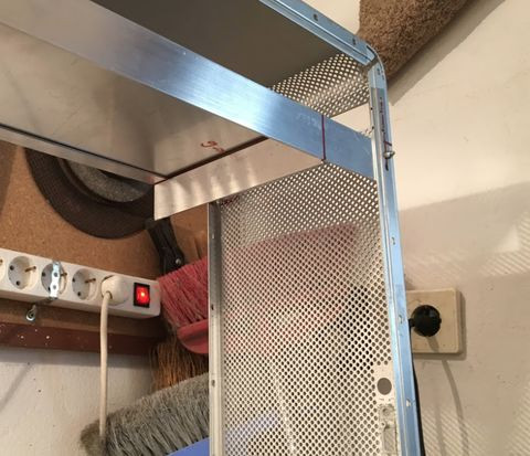 A ház tetején lévő takarásra vagy mágneses porszűrőt fogok használni, vagy pedig perforált lemezt fogok beragasztani, ezt még majd később eldöntöm.