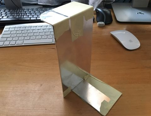 Korábban azt írtam hogy csak simán felfúrom a felső dupla radit a ház tetejébe és kész. No hát, idő közben eléggé cseszte a csőröm, hogy igen puritánul lett ez a rögztés megoldva, tekintve, hogy a ház borítására nem tervezek csavart. Így kitaláltam egy alternatív megoldást. Csináltam egy konzolt: