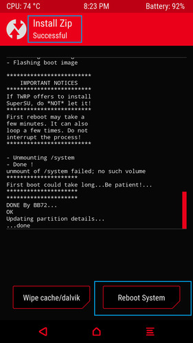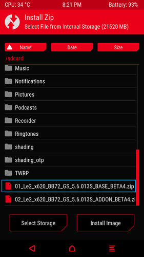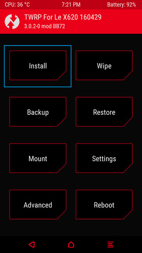 Ha ezzel is megvagyunk, akkor mehetünk vissza az Install menüpontba és a korábban felmásolt BB72 telepítő zip installálása céljából.