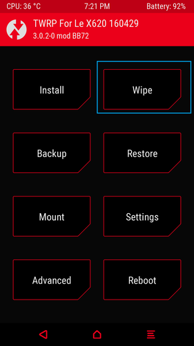 Következő lépésben lepucoljuk a telefonról a Data, cache és Dalvik cache adatait, a lépések a képeken láthatóak: (AZ INTERNAL STORAGE-T SEMMIKÉPPEN SE BÁNTSD)