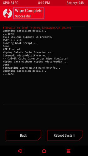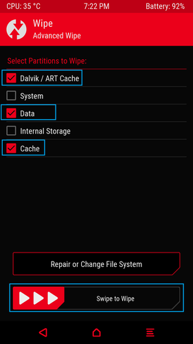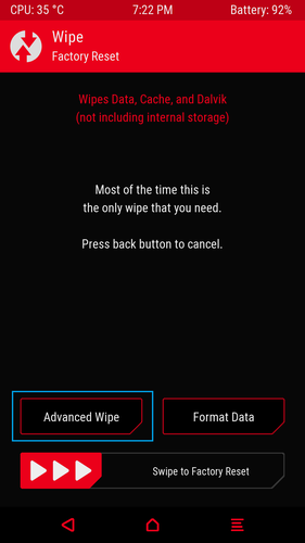 A data partíció törlése csak akkor szükséges, ha másik developertől származó, vagy gyári ROM-ot használtunk a készüléken.