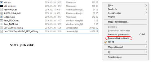 Intézőben a Shift+ jobb egérgomb kombinációval nyitunk egy parancssort és beírjuk a következőt: