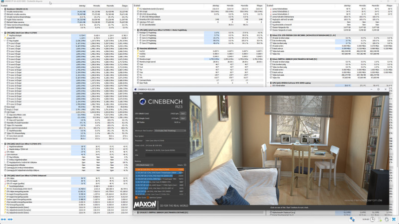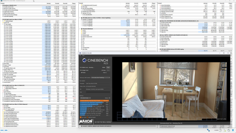 Egy CINEBENCHMARK R23 teszt sorozatot csináltam, különböző beállítások mellett.