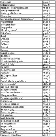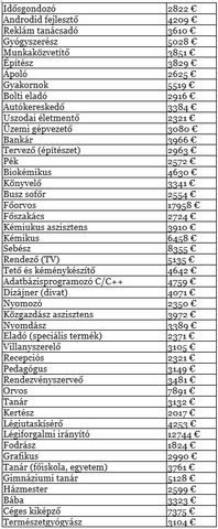 Íme a lista (bruttó):