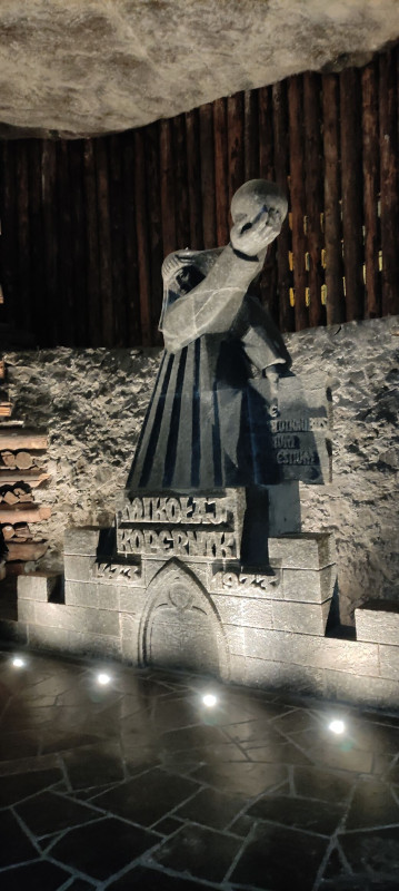 A képen Kopernikusz látható, ahogy a kezében tartja a Földet, aki a Krakkói Egyetemen folytatott tanulmánya során feltehetően ellátogatott a bányába, a szobor ennek állít emléket.