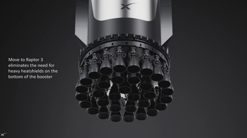 A Raptor 3 hajtóművek egyik újdonsága, hogy úgy lettek kialakítva, hogy nem lesz szükség hővédő pajzsra. Ez egyfelől tömeg-megtakarítás, másfelől nagyobb megbízhatóságot hoz, mivel a hővédő pajzs alatt nem tud felgyülemleni hajtóanyag.
