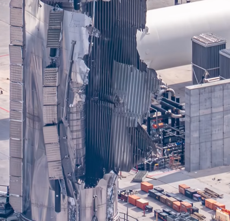 A terveket persze a balesetek is borzolják, 2025 november 21.-én az első V3-as, a 18-as azonosítóval bíró SuperHeavy egy nyomáspróba végrehajtásakor „anomáliát” szenvedett (szép kifejezés arra, hogy az oxigén- tartály-szekció gyakorlatilag szétnyílt), ez még csak a tartályok üzemképességét vizsgálta, a hajtóművek még nem volt felszerelve a fokozatra.