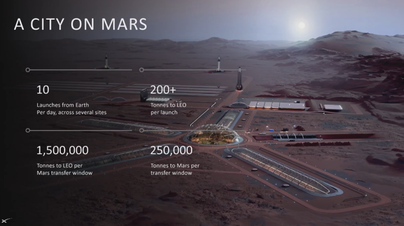 Az első Marsi város vázlata, napi 10 (!) StarShip indítással számolva