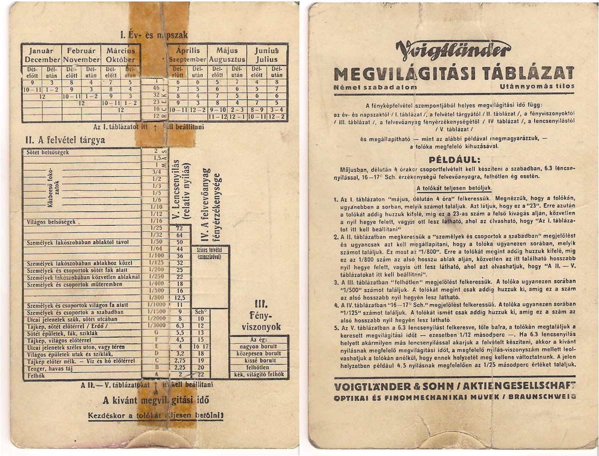 Pár hete elhunyt nagyanyám holmijai között keresgéltem, találtam egy régi megvilágítási táblázatot, amit fotózáshoz használt valaki a családból. Gondolom ilyet már nem használnak, nem tudom, de ahogy az útmutatója alapján kipróbáltam, érdekes lehetett ilyet alkalmazni, ha jó képet akart az ember lőni.