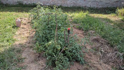 Újra felástam 2 sornyi területet, és elültettem a palántákat. Kicsit több helyet kellett volna hagyni közöttük, már látom. A kapálással továbbra is hadilábon állok, így inkább mulcsoztam, a kertben levágott fűvel terítettem le a paradicsomok körüli részt. Ezt nagyon meghálálták, alig nőtt ki pár gaz, és a víz párolgását is remekül visszatartja. 2-3 hetente úgy is le kell nyírni a füvet, van utánpótlás. Az alsó rétege pedig fokozatosan lebomolva táplálja a paradicsomokat. A mindennapi ****ból jó kicsit kikapcsolódni a kertben.