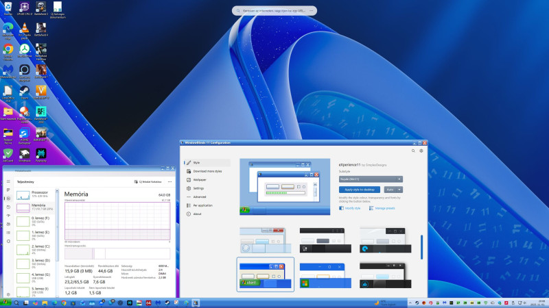 A WindowBlindset régen a Windows kinézetétől eltérő témák beszerzésére használtam. Ma azért vásároltam új licencet a Steam-ről, mert egyrészt 50%-os akcióban volt, másrészt pedig ezzel a programmal tudom pótolni a Microsoft rendszereinek azon hiányosságát legalább részben, ami pótolja, hogy a Windows 11-ben - ahogyan a 10-ben sem - nincs gyári opció a korábbi Windows-ok témáinak alkalmazására.