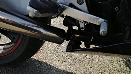 Munkából robogok haza tegnap a 63.-as úton, 30°C nyár, végre kellemes lábszár epiláló hőmérsékletre melegedett motorkerékpár a lábam között, a gumik is jól tapadtak, kedves beláthatatlan dimbes-dombos kanyarok, minden adott a jó motorozáshoz. Kicsit döntögettem, nagy gáz, nagy motorfék, élmény motorázás kérem szépen. Mígnem az egyik dombra felérve harmadikba 13'000RPM környékén hallok egy szolid reccsenést és a motor hangja megháromszorozódik. Mondanom sem kell gyanús lett a dolog, viszont egy igazi versenygép hanghatás keletkezett. Váltásnál gázelvételre szolid durrantás, utána 10 ezerről jött a motorfék ahol rendesen rotyogott alattam a szekér. Sejtettem én hogy a sérült kipufogó környékén lesz a bibi, de ekkor még komolyabb dolgot nem észleltem. Pár pillanatra rá valami elkezdte folyamatosan ütögetni a jobb lábtartómat. Lenéztem hát, és látom hogy lifeg a kipufogó dob és az "összekötő" cső a lábtartó aljával ismerkedik. Félreálltam a következő biztonságos helyen, tapasztaltam hogy az egész cső teljes átmérőjében elvált. Motoros kesztyű power, vissza tudtam ütögetni a csonkra a levált csövet, és szépen lassan hazakullogtam.