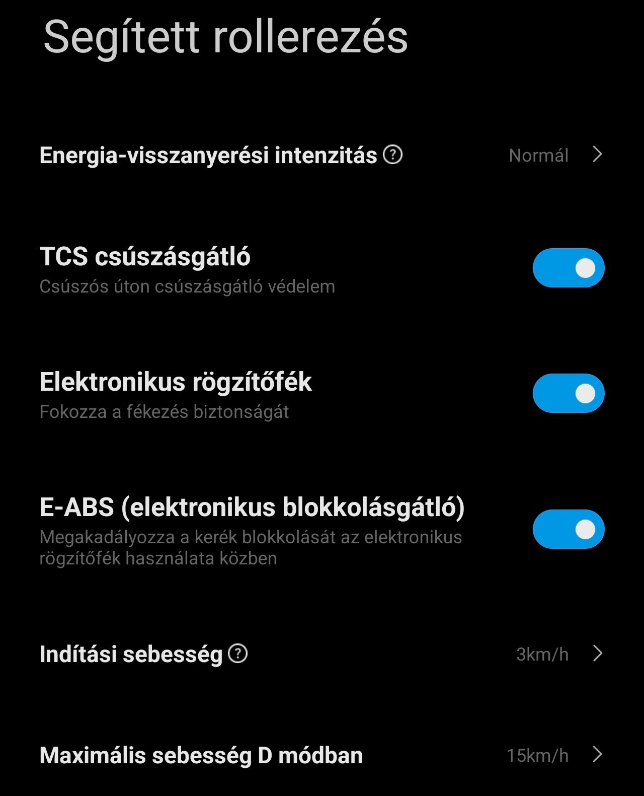 A bekapcsolt energiavisszanyerés még Normál módban is "sok" és egyenes úton nagyon vissza fogja a roller gurulását ami azt eredményezi, hogy kényelmetlen lesz az utazás mert előre hátra dülöngsz a sok "fékezgetéstől" gáz elvételkor.