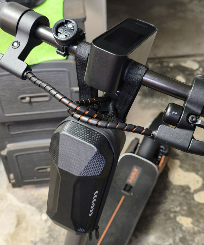 Ami nálam annyit jelent, hogy vettem rá egy 2 literes roller táskát, egy normális lámpát előre és a "ronda" narancs színű kábelekre tettem fekete kábelvédőt.