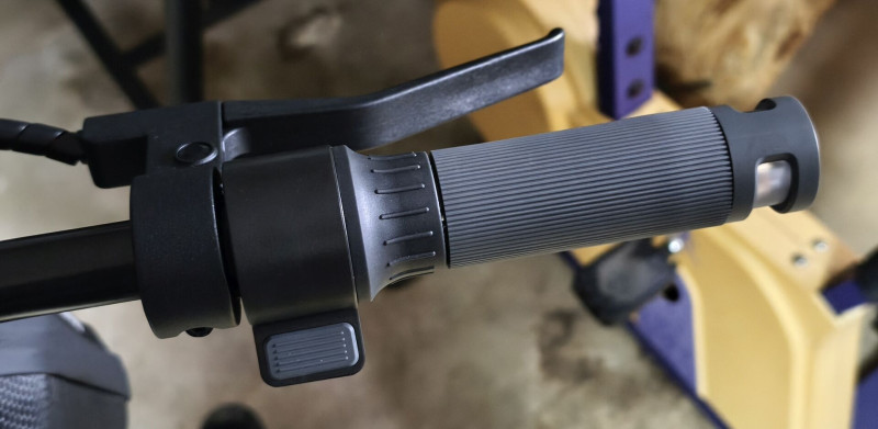 Jobb oldalon pedig a gázkart találjuk amit lehet működtetni hüvelykujj vagy marokfogással kinek melyik jön be.