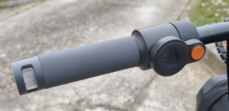 Itt lehet be/kikapcsolni a rollert, a módokat váltani és az index gombjai, továbbá feljebb van a csengő ami szerintem hangosabb mint a elektromos duda társai.