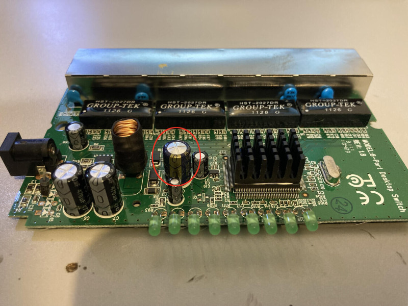 Két csavar fogta össze. Meg volt benne egy, azaz 1db púpos 1000uF 6,3V kondenzátor. Csere, és működik. 15 perc, a (használt) kondi előkeresésével együtt.