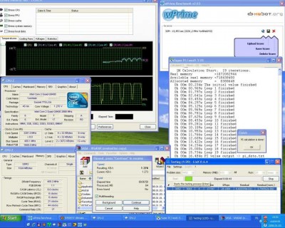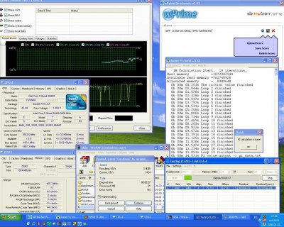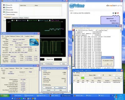 Ha nem lenne itt a hitelesítő kép, fogadjunk ti sem hinnétek el, hogy laza 1GHz-et húztam a CPU-n alapfeszültségen! Márpedig tényleg igaz! A tesztprogramok gyorsulnak folyamatosan, s a CPU úgy tűnik, hogy szupravezetőből készült, mert csak nem fullad ki! Viszont itt már, egy cirka 5 fokkal melegebbek a CPU magok. Bár azt hiszem ezt nyugodtan, elnézhetjük neki