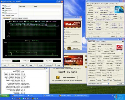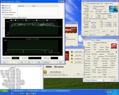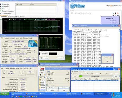 3, 8GHz lett volna a következő lépés, de harmadszori próbálkozás után sem tudtam, még a Windowst betöltésre sem sarkallni, így egy kis pihi, majd frescho barátom hozott nekem 2GB-os Kingston modult, így azzal folytattam… a 3, 8GHz még mindig nem lett meg. Na jó vegyünk visszább, és próbálkozzunk a 3, 75GHz-el.. jó sok küszködés után összejött, de ide már kellett az 1,4125V, a CPU-nak, a CPU VTT feszültségét is feljebb kellett raknom 1,5V-ra, és az északi híd feszültsége is kapott további 5századot, azaz 1,35V-ot kapott!