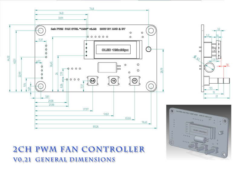 Az eszköz két független, 12V-os, PWM-rendszerű ventilátort kezel automata vagy manuál módban, ahol a paraméterek a közkedvelt SSD1306, "egysoros", 128x32px OLED kijelzőn monitorozhatóak. Csatornánként 500mA a terhelhetősége, bár a legtöbb, ma kapható venti megelégszik ennek a negyedével, ha fullon hajtjuk is.