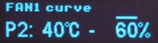 Tehát konfigurálhatjuk pl., hogy 45°C-nál kapcsoljon be 35%-os PWM kitöltés mellett. A következő (köztes) pont a grafikonon mondjuk 75°C és 60% PWM, majd innét egy másik meredekség a végpontig, mondjuk 95°C és 90%. [$] Az algoritmus ellenőrzi a függvény szigorú monotonitását, mást nem is fogad el.
