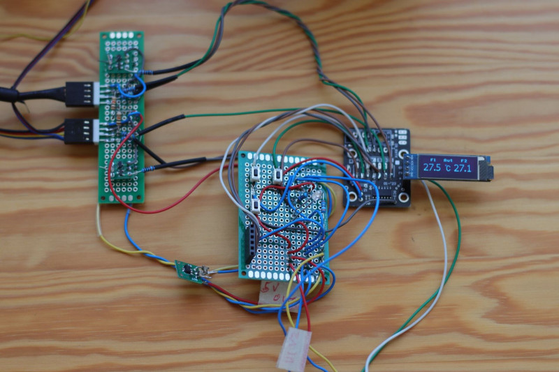 Ha valamelyik hőmérő esetleg elfelejtene adatot küldeni a az I2C-vonalon, akkor a még élő szenzor szolgáltat majd alapértéket mindkét kör számára. Ha egyik szenzor sem elérhető, akkor visszavált manuális módba és az ott előzőleg beállított értékekkel tekeri a ventiket a valós hőmérséklettől függetlenül.
