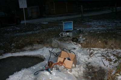 Mivel már sötétedett, ráadásul piszok hideg volt, sietősen kerestünk egy olyan részt ahova kipakolhattunk, s jónak láttuk hogy elmerítsük a számítógépet.