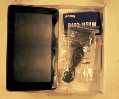 Megrendeltem az árut a Myaudio honlapjáról, és másnapra már a kezemben is tarthattam a szokatlanul apró csomagot. A dobozban papírok, két MyAudio zenekártya, töltőfej, USB kábel, fülhallgató, és egy USB - micro USB átalakító lapult a tablet mellett. A kábelek kicsit rövidek, a fülhallgatóval pedig próbálkozni sem érdemes, de legalább van.