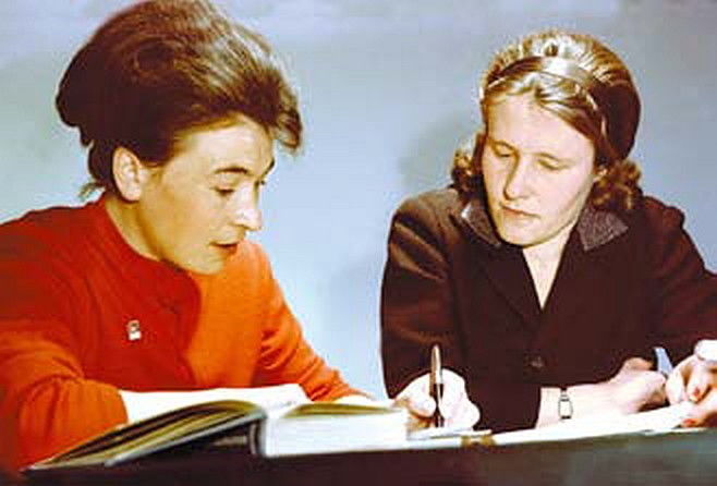 Irina Szolovjova és Valentyina Ponomarjova, a Voszhod-4 kitűzött legénysége,
