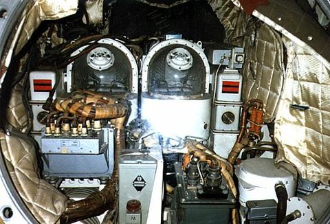 Egy Voszhod (nincs katapultülés) két "kutyaóllal", ilyen volt a Kozmosz-110 is