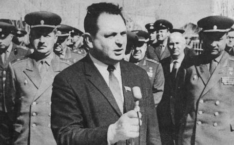 Vaszilij Misin beszédet tart 1967-ben, már a szovjet űrprogram fejeként