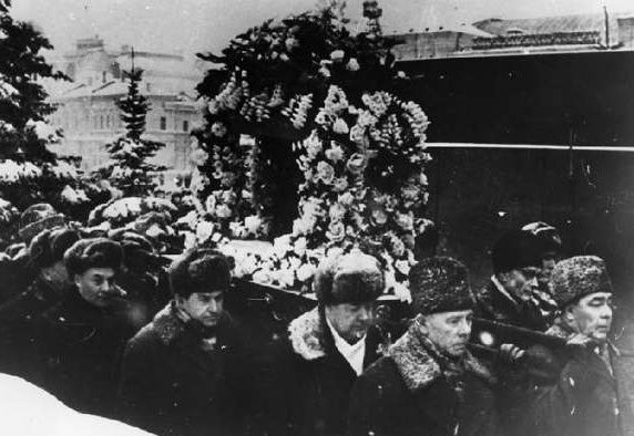 Koroljov maradványait viszik a vállukon párt és az űrprogram prominensei,
