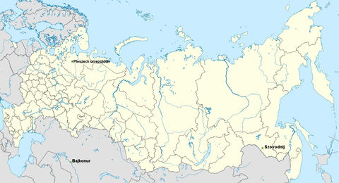Pleszeck, Szvobodnij és Bajkonur helyzete Oroszországot és a környező területeket mutató térképen