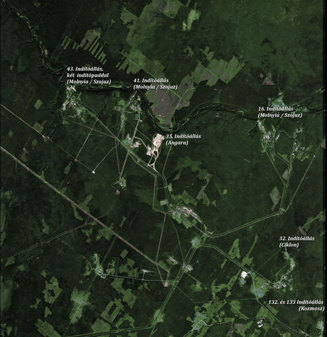 de a Pleszeck űrrepülőtér indítóállásainak helyzetét jól mutatja