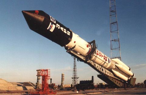 Az Enyergija-M súlymakettje az Bajkonuri 110 „Bal” indítóálláson
