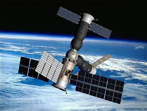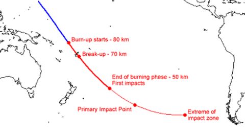 A Mir végső útja: nagyjából 80 km-es magasságban a légkör súrlódásától égni kezd, cirka 70 km-es magasságban elkezd szétesni, végül a darabjai több, mint 1500 km hosszan zuhannak az óceánba