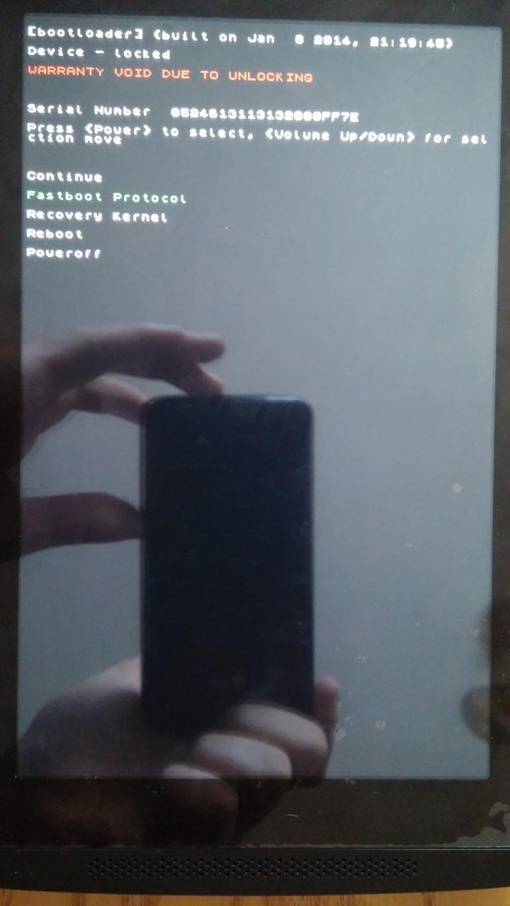 2) Hozzuk be a bootloadert úgy, hogy egyszerre nyomva tartjuk a bekapcsológomb + hangerő fel gombot